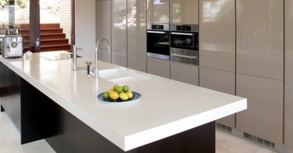 This ambience is further enhanced by the use of simple contrasts, such as the stark white of the Corian benchtops with the cabinetry in Sand Grey and timber veneer. The smooth surfaces of the benchtops blend seamlessly with the sleek, handle-free lines of the cabinets, with storage running all the way to the ceiling for extra practicality.